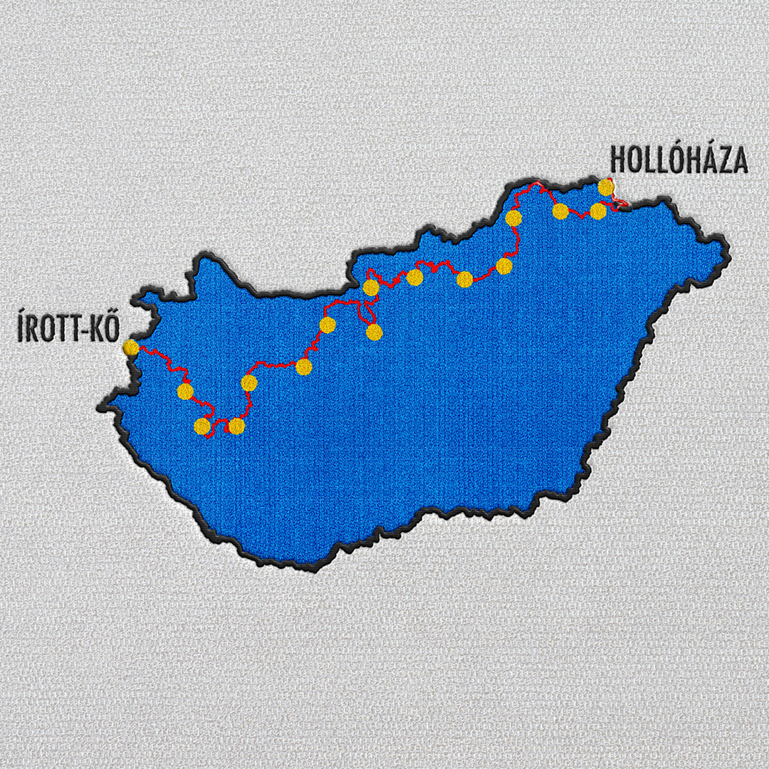 For the daily stage maps, I aimed to reproduce the route as accurately as possible. The main character, Balázs Simonyi, wore a watch that recorded GPS data while running along the hiking trail. By importing this data into 3D software, I was able to reconstruct the exact route along with its elevation profile, which was then overlaid onto high-resolution satellite terrain maps from NASA.